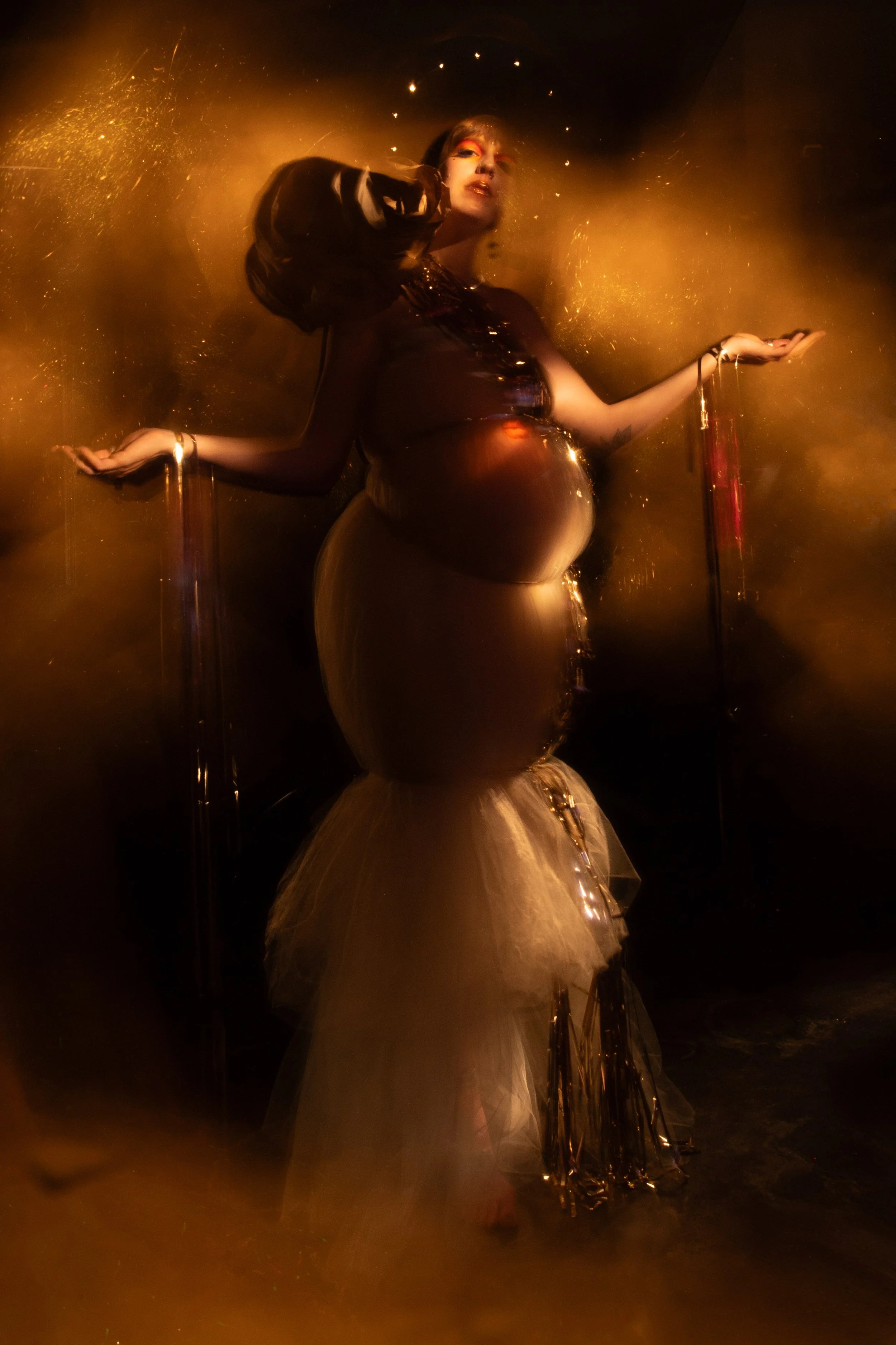 The maternal body as both vessel and witness, moving between creation and decay through our time on this planet. Drawing inspiration from permaculture materials, fallen butterfly, dried rose and peony and native Western Spice Bush (Calycanthus occidentalis)